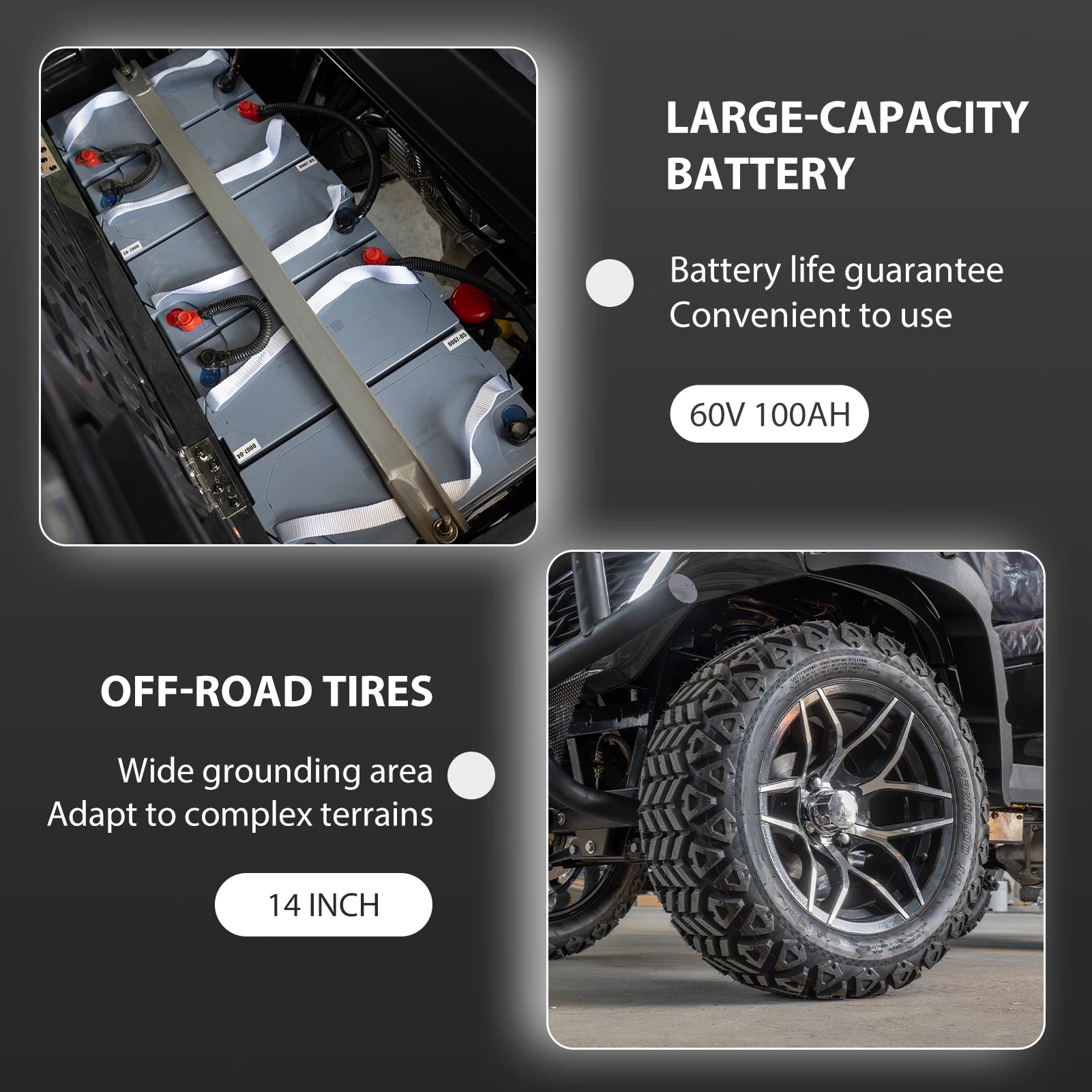 - 90–110 Ah battery pack provides 70–90 km per charge, giving you several rounds or errands before recharging and steady hill‑climb torque.